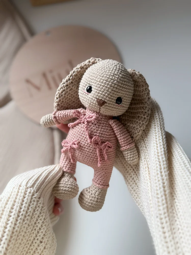 Ručne háčkovaný Miulee Zajačik je jedinečný kamarát, ktorý najskôr vzniká ako originálny Miulee návrh na papieri a následne ožíva precíznou ručnou prácou od prvej po poslednú bodku. Každý kúsok je ručne vyrobený mladou maminou na Slovensku, s dôrazom na detail, kvalitu a poctivé spracovanie.