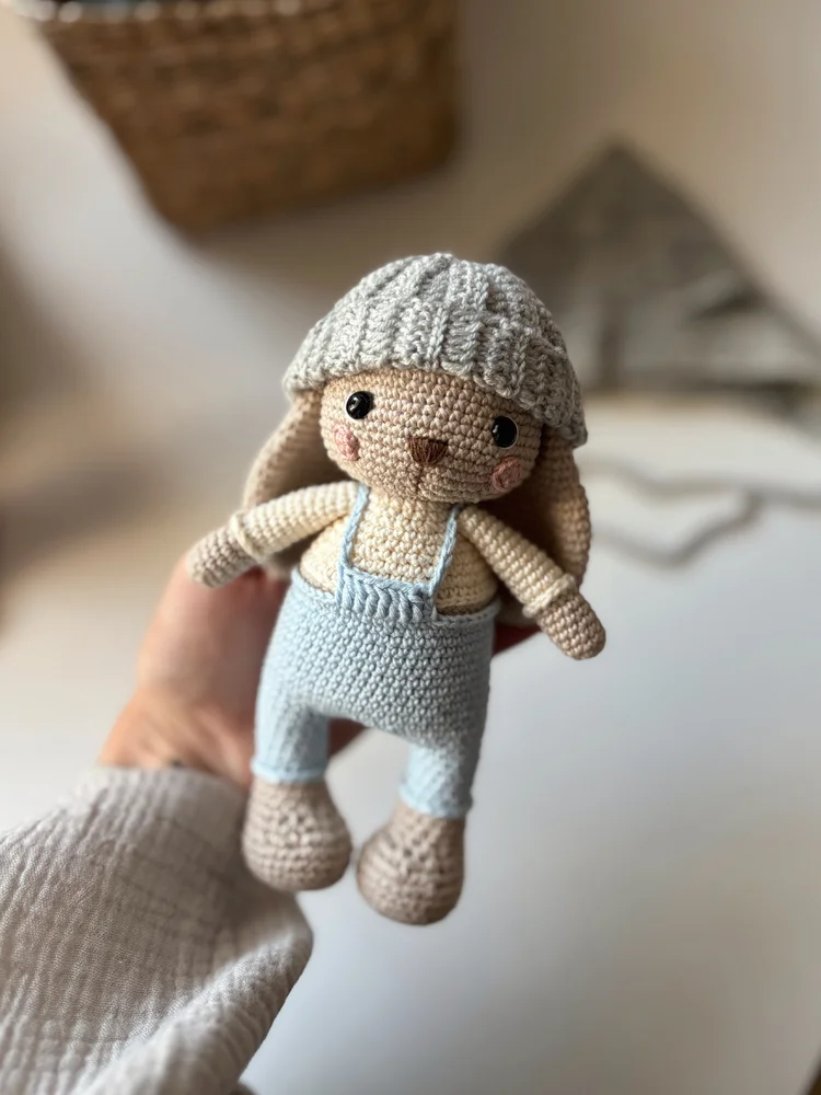 Zajačik je vyrobený s kvalitnej príjemnej 100% Bavlny s certifikátom (vhodné 0-3r) + ma na sebe čiapočku vyrobenú z Merino ovčej vlny (s certifikatom). Očká sú použité bezpečnostné s poistkou ( odporučanie -vhodné 3+) a noštek je vyšívaný.