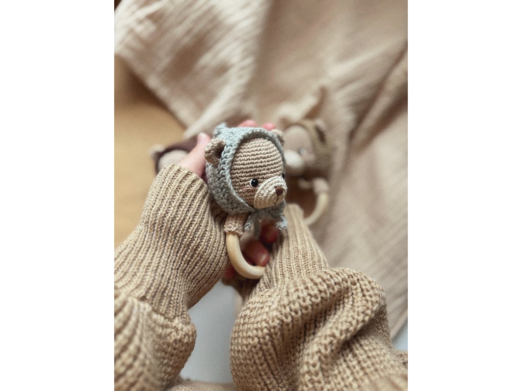 Milé Hrkaločky Medvedík s čiapočkou -100% bavlna + 100% Merino vlna.