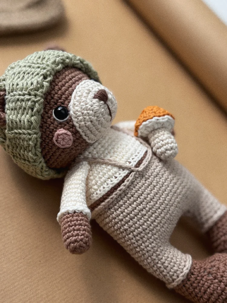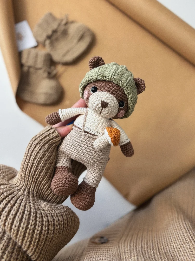Jedinečný, mäkký a plný lásky – ručne háčkovaný medvedík zo 100 % bavlny, ktorý prináša teplo a úsmev do každého dňa.