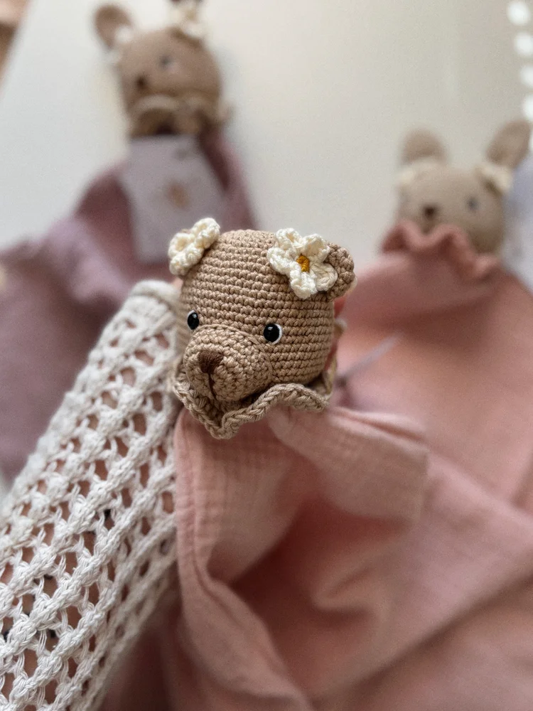Mojkáčik Vyrobený z bavlnenej priadze s certifikátom + bavlneného mušelínu. Tento milý jemný kamarát je ideálny pomocník pri zaspávaní či každodennom mojkaní.
