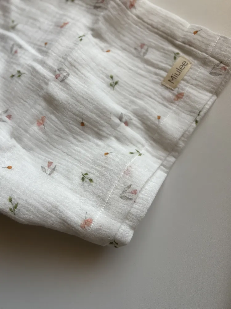 Mušelínová prikrývka Miulee je jemný a všestranný kúsok, ktorý môže slúžiť ako ľahká prikrývka, osuška alebo mojkáčik.