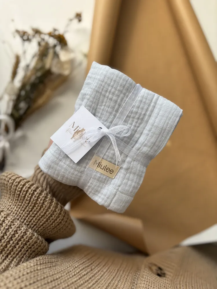 Mušelínová prikrývka Miulee je jemný a všestranný kúsok, ktorý môže slúžiť ako ľahká prikrývka, osuška alebo mojkáčik.