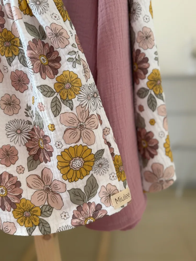 Autorské Miulee šaty sú navrhnuté a ušité na Slovensku z kvalitného 100 % bavlneného mušelínu s certifikátom OEKO-TEX® Standard 100, ktorý je šetrný aj k citlivej detskej pokožke.