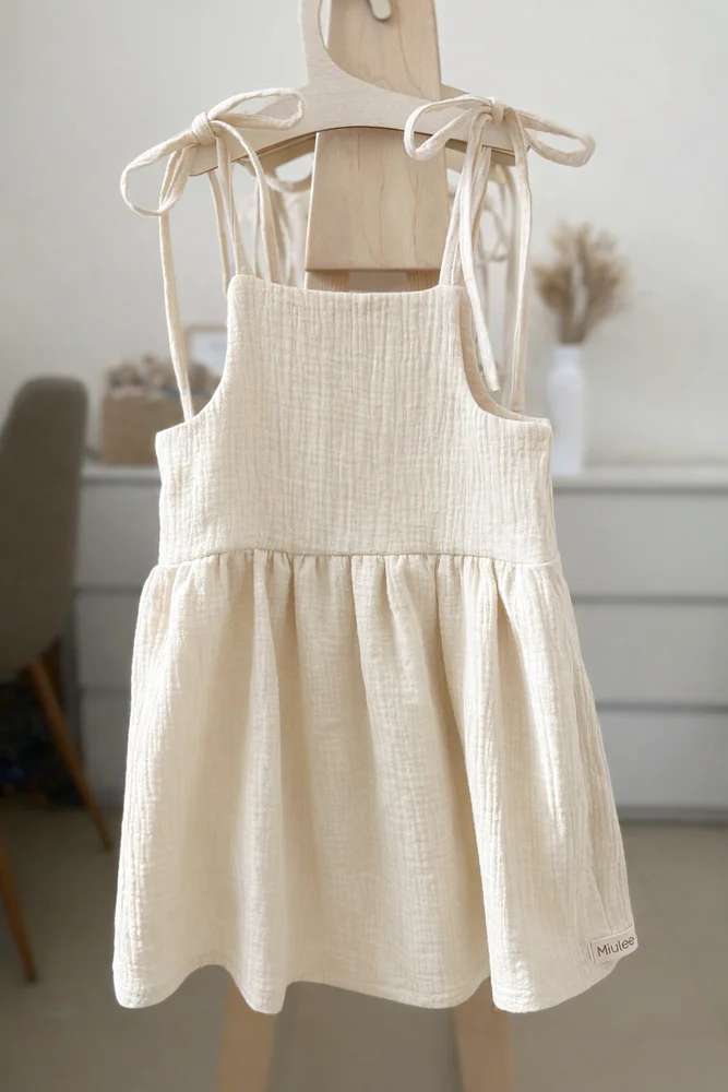 Autorské Miulee šaty sú navrhnuté a ušité na Slovensku z kvalitného 100 % bavlneného mušelínu s certifikátom OEKO-TEX® Standard 100, ktorý je šetrný aj k citlivej detskej pokožke.