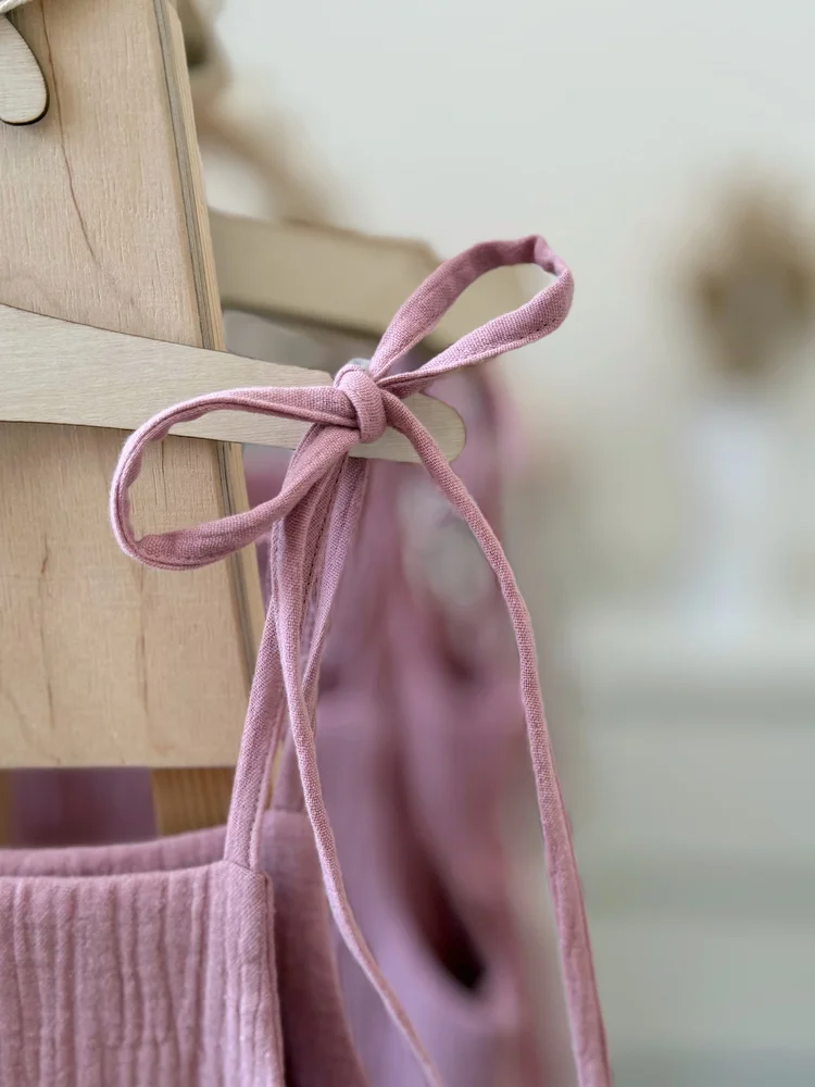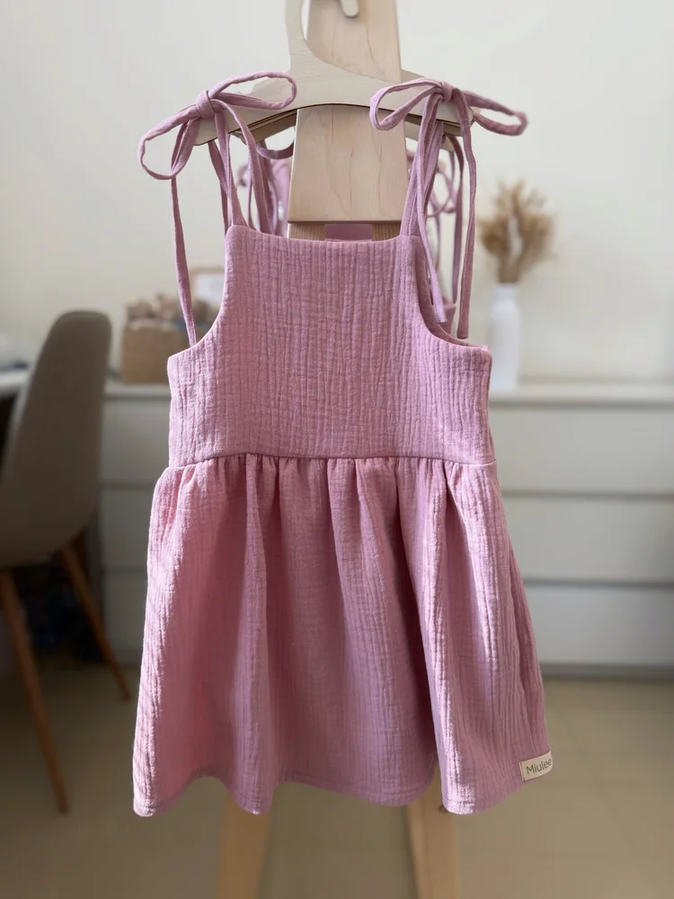 Šaty majú nastaviteľné ramienka viazané na mašličku, vďaka ktorým jednoducho prispôsobíte dĺžku – takže dieťatku vydržia dlhšie. Voľný a pohodlný strih poskytuje maximálne pohodlie pri hre aj objavovaní sveta.