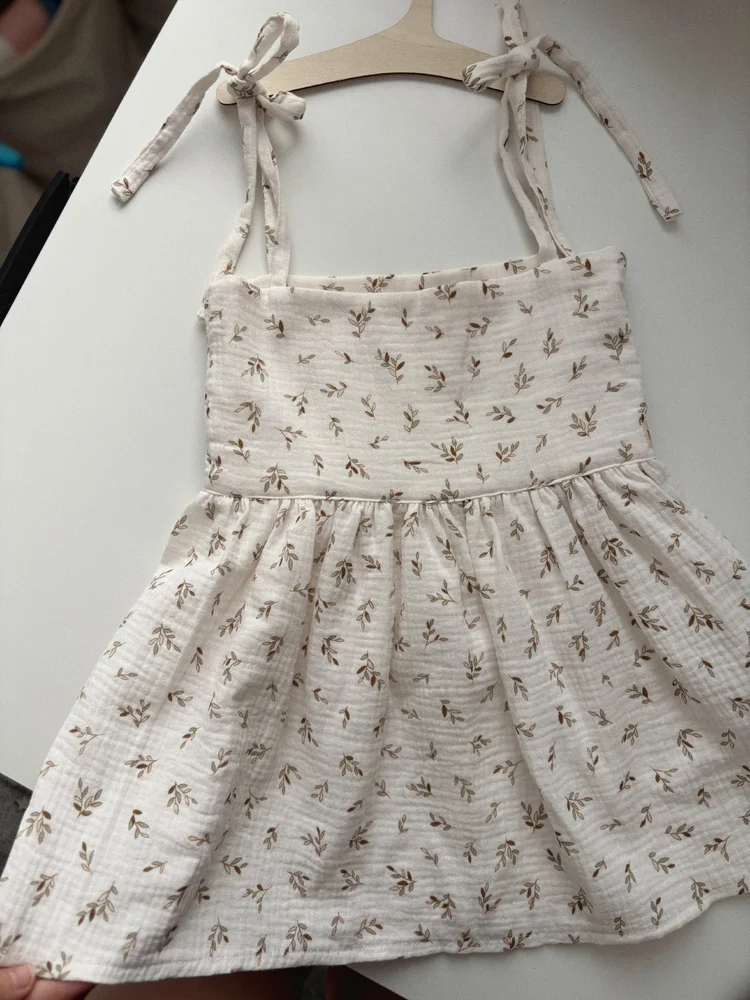 Mušelínové šaty -100% bavlna. Šaty sú veľmi pohodlné, ľahké a prijemné na nosenie. Výhodou týchto jednoduchých detičiek je - vynosenie aj v chladnejších dňoch a teda šatičky sú využiteľné aj na jedeň s tričkom a pančuškami.