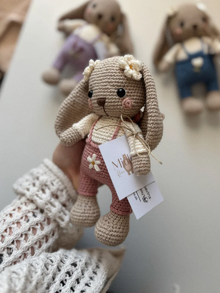 Jedinečná Ručne háčkovaná Zajačica z Kolekcie Mia je vyrobená z kvalitnej 100% bavlnenej priadze a vyplnená antialergickým dutým vláknom. Jej jedinečnosť prekvitá aj vďaka výšivke-autorská Miulee tvorba.